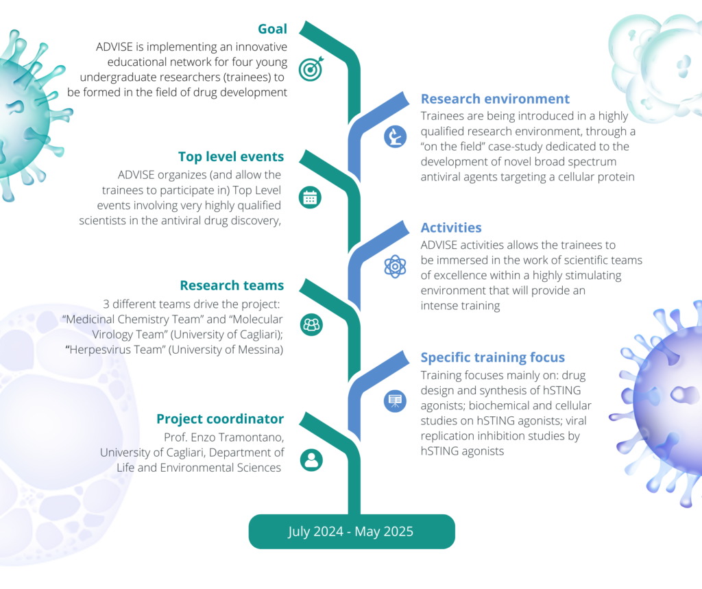 ADVISE is an educational network with a multidisciplinary program in which five trainees are embedded in a case-study research effort and exposed to common learning activities in the field of drug development.