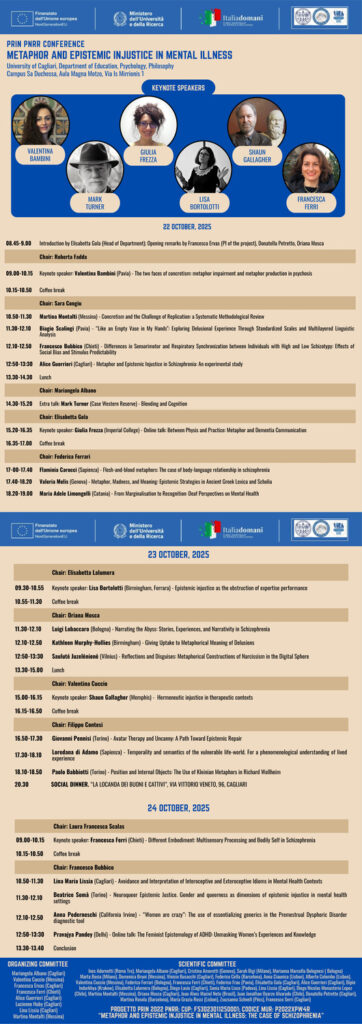 (4) PRIN-PNRR Conference on “Metaphor and Epistemic Injustice in Mental Illness”, organized by Francesca Ervas & Alice Guerrieri
