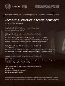 (10) “Incontri di estetica e teoria delle arti”: Seminar of the MA course in “Filosofia e Forme del Sapere”, organized by Luca Vargiu