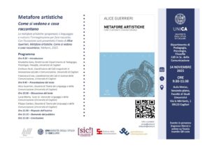 Presentazione del libro di Alice Guerrieri, Metafore artistiche (Meltemi, Milano, 2025), with Filippo Contesi (University of Cagliari), Francesca Ervas (University of Cagliari), Elisabetta Gola (University of Cagliari), Alice Guerrieri (University of Cagliari), Emiliano Ilardi (University of Cagliari), Lucia Morra (University of Cagliari); Aula Motzo (Sa Duchessa Campus, Central Building) and accessible online