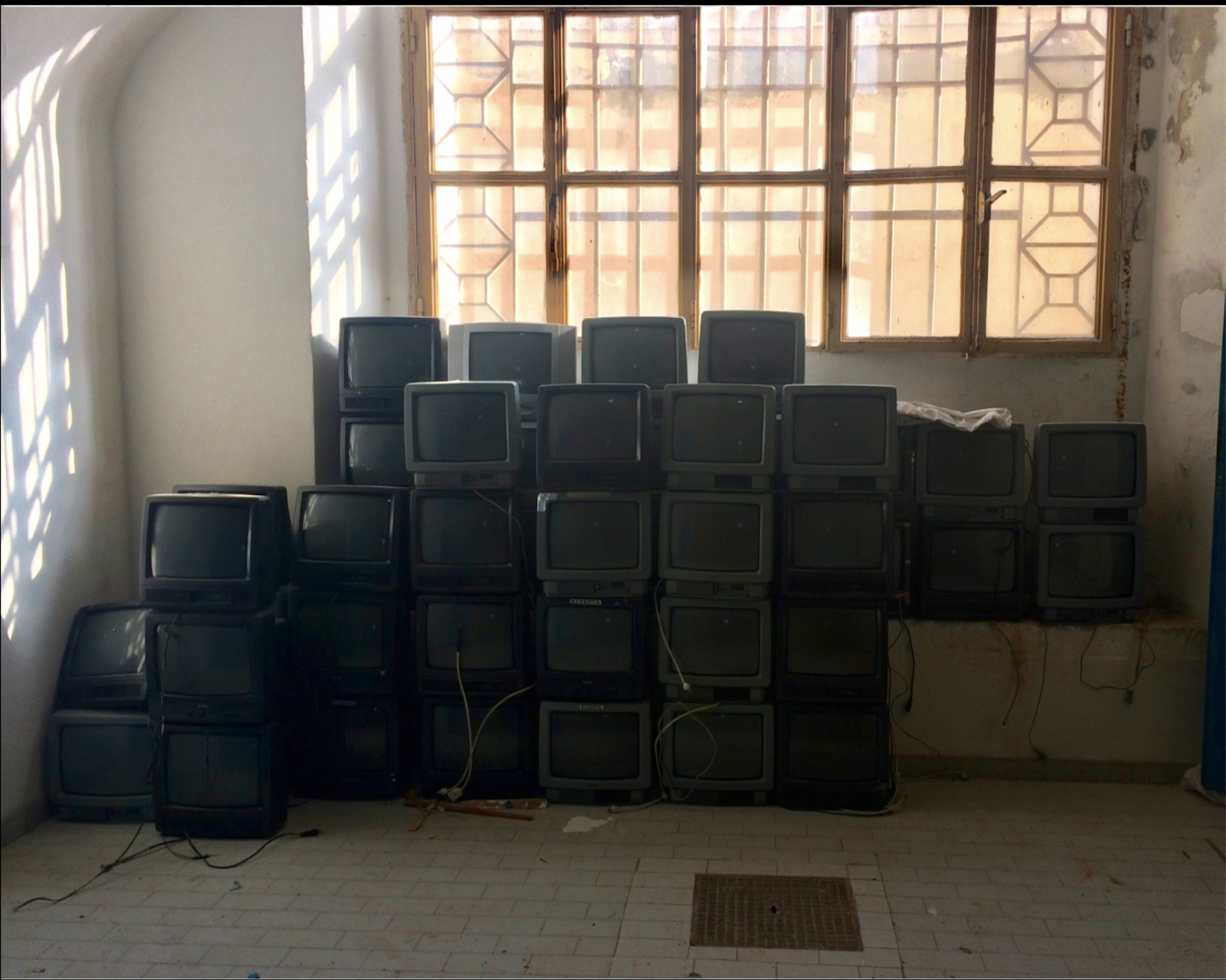 - Cumulo di monitor abbandonati al piano terra del braccio sinistro dell’ex-carcere di Buoncammino.
