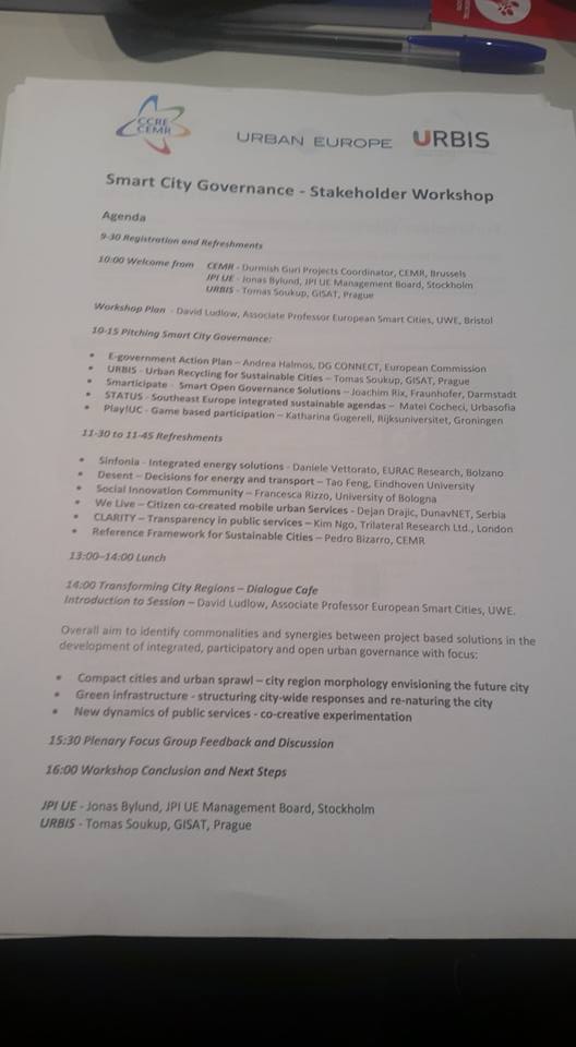 The GHOST project is at JPI Urban Europe-URBIS Smart Cities Governance Stakeholder Workshop (Brussels 24th October 2016).