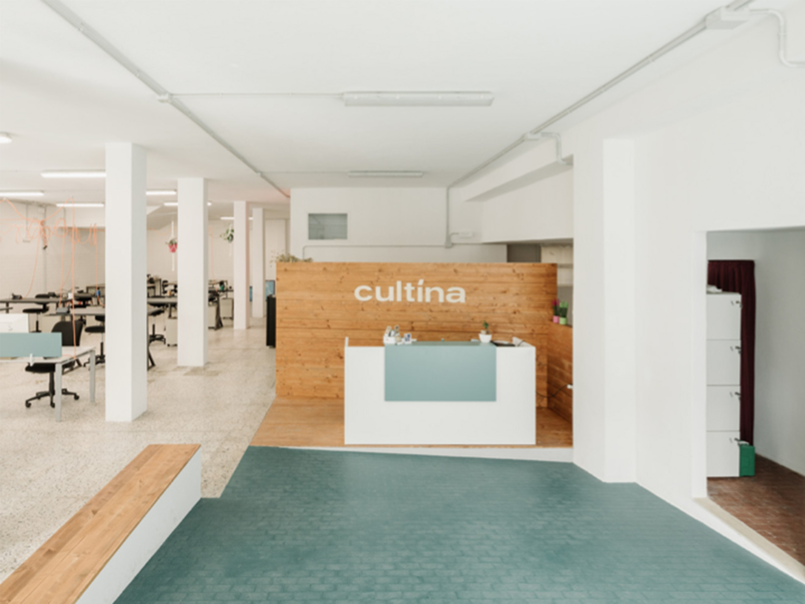 Il progetto per Cultína, un coworking dedicato alle professionalità creative, nasce dalla necessità di uno spazio il più possibile flessibile, capace di accogliere in comunità di spazio e tempo gruppi di lavoro e professionisti individuali e di modificare la propria configurazione in breve tempo per ospitare attività anche molto differenti tra loro: lavori continuativi, workshop ciclici e eventi occasionali di vario genere. Il locale, nel quartiere storico di Villanova, originariamente garage, in seguito panificio e deposito di materiale edile, è un grande piano seminterrato di circa 300 m2 su più quote raccordate da rampe ripide, punteggiato da pilastri irregolari disposti in fila, al centro dello spazio più ampio.