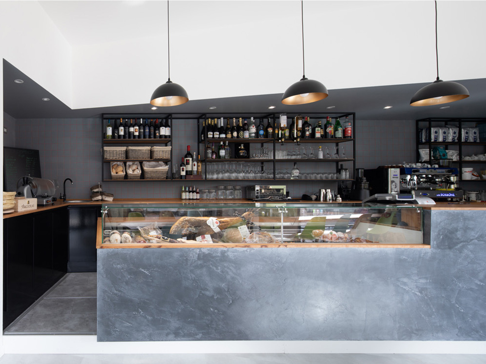 La Dispensa è un piccolo pancaffé realizzato con un budget ridotto all’interno di un locale esistente che ospitava una copisteria.