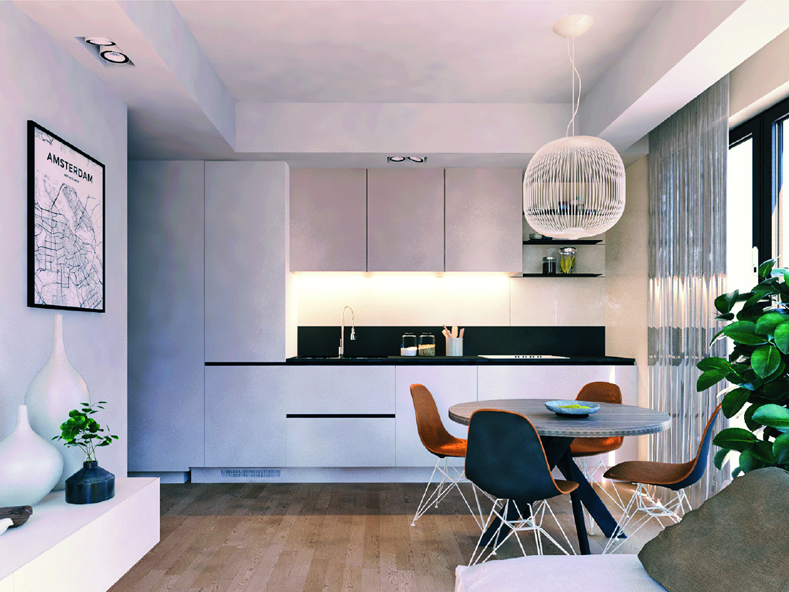 Gli interni sono caratterizzati da un distributivo semplice composto da un open space in zona living, vero protagonista della casa, bagno e camera padronale.