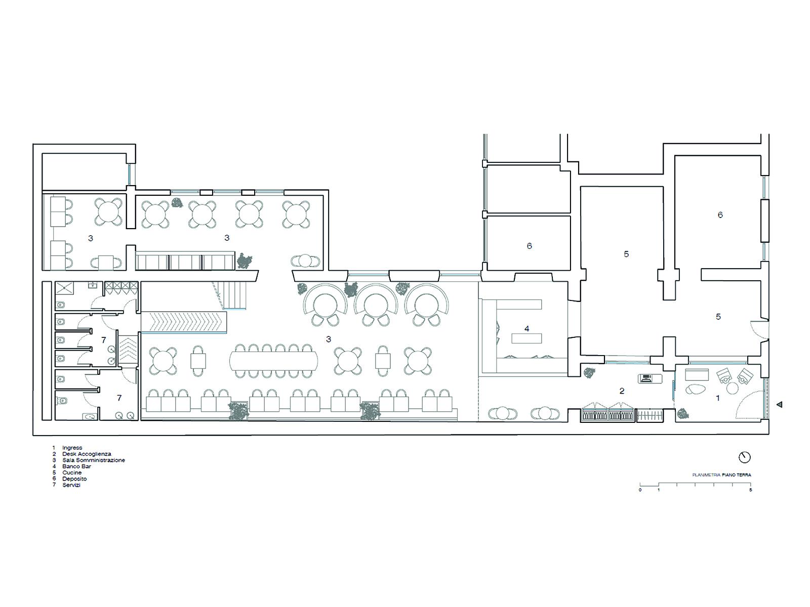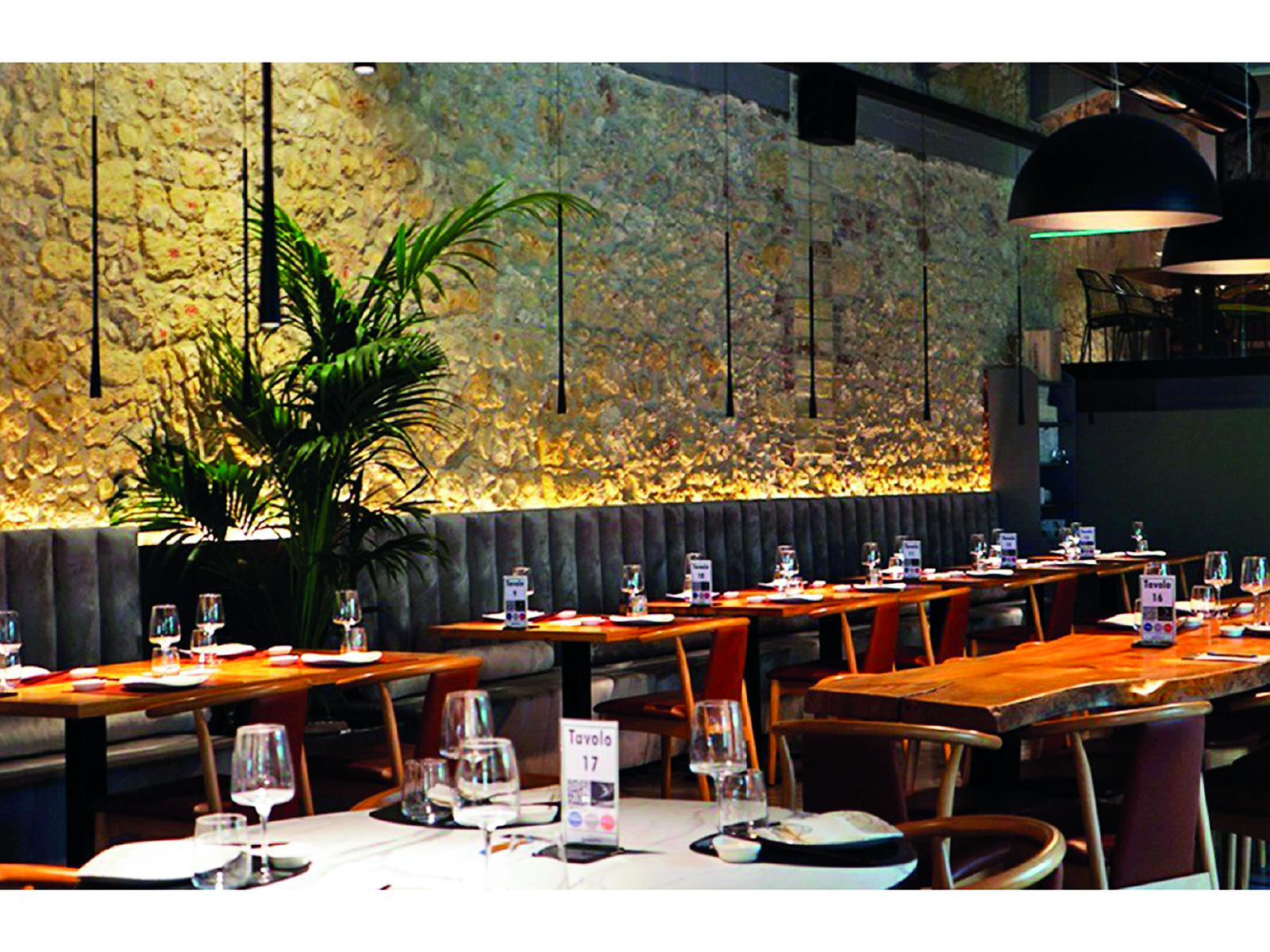 Si è quindi cercato di creare un ambiente contemporaneo, architettonicamente pulito e rigoroso che dialogasse con un arredamento più caldo e romantico, un’atmosfera che facesse sentire il cliente a proprio agio, consentendogli di godersi a pieno l’esperienza culinaria.