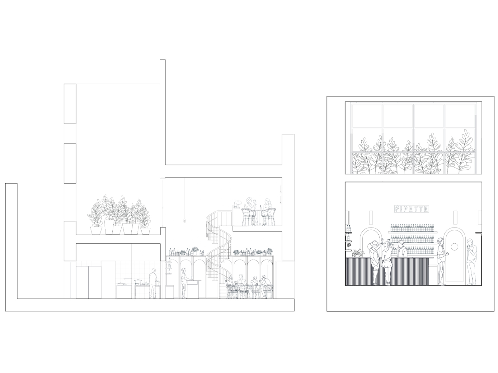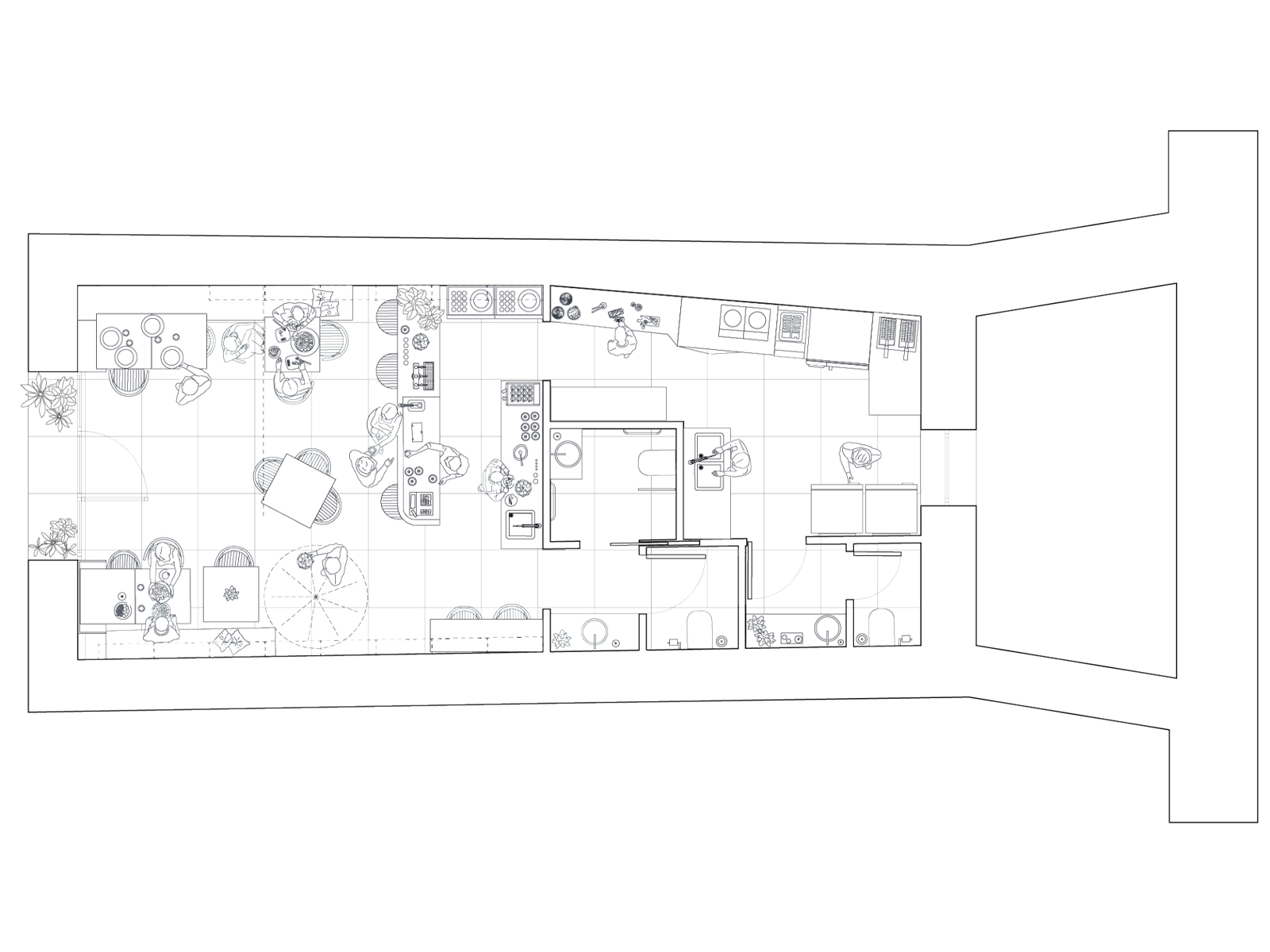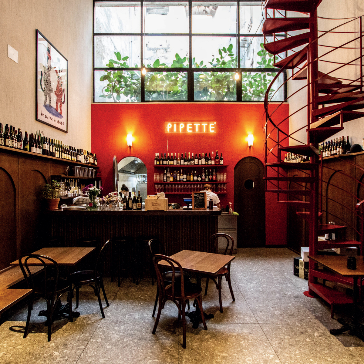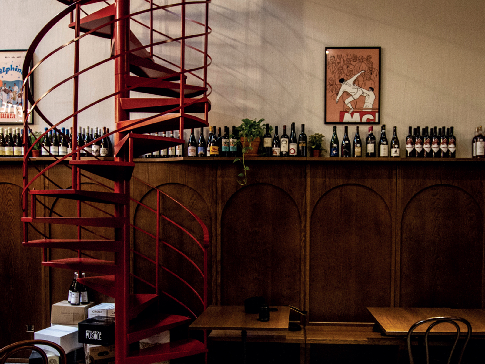 All’interno del quartiere marina un’insolita configurazione spaziale da vita ad un bistrot dagli interni che strizzano gli occhi a Parigi lasciando i piedi nel mezzo del mediterraneo, Pavimenti terrazzo, boiserie e finestre dal sapore industriale creano un’atmosfera intima e dai toni caldi che mette insieme cibo, vini naturali e culture trasversali.