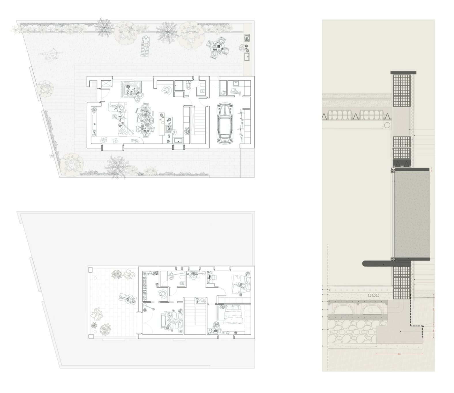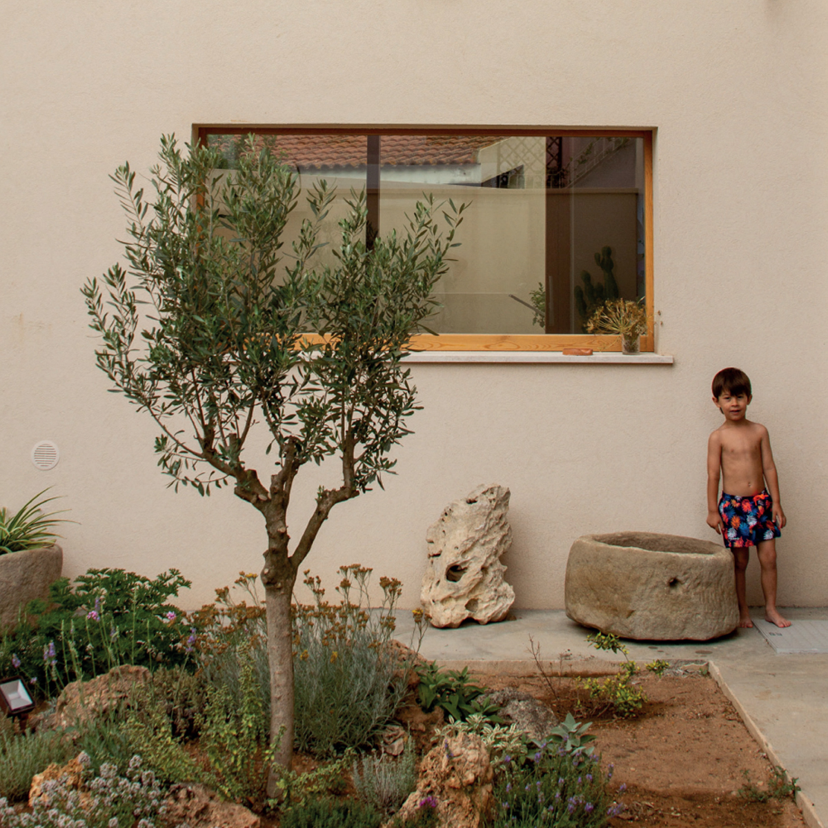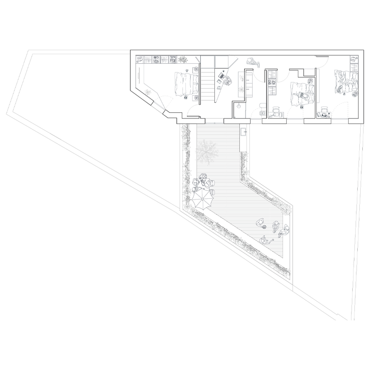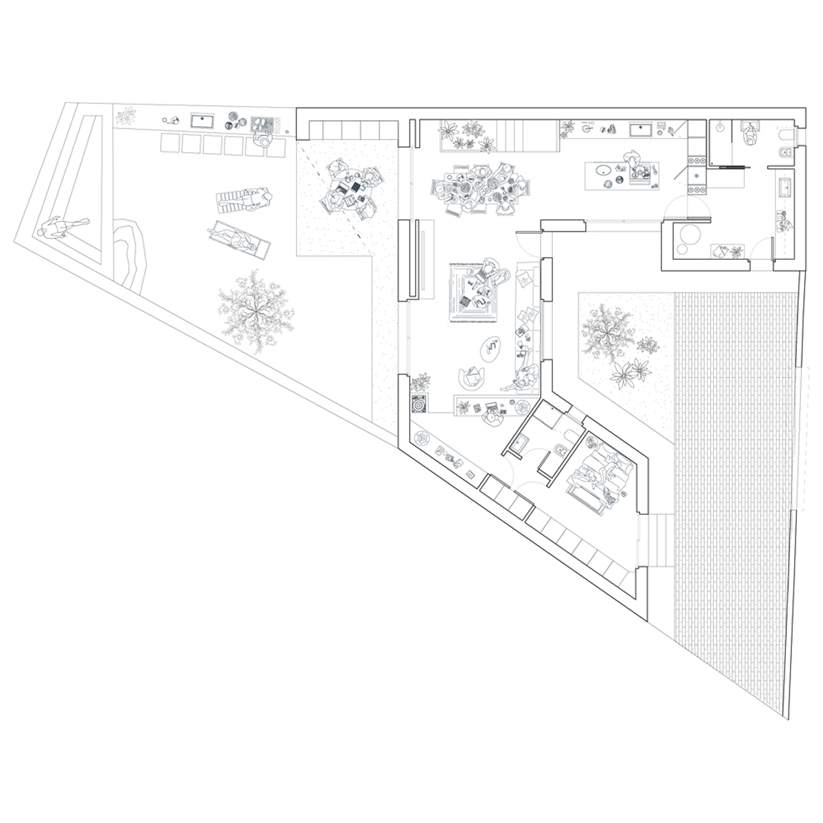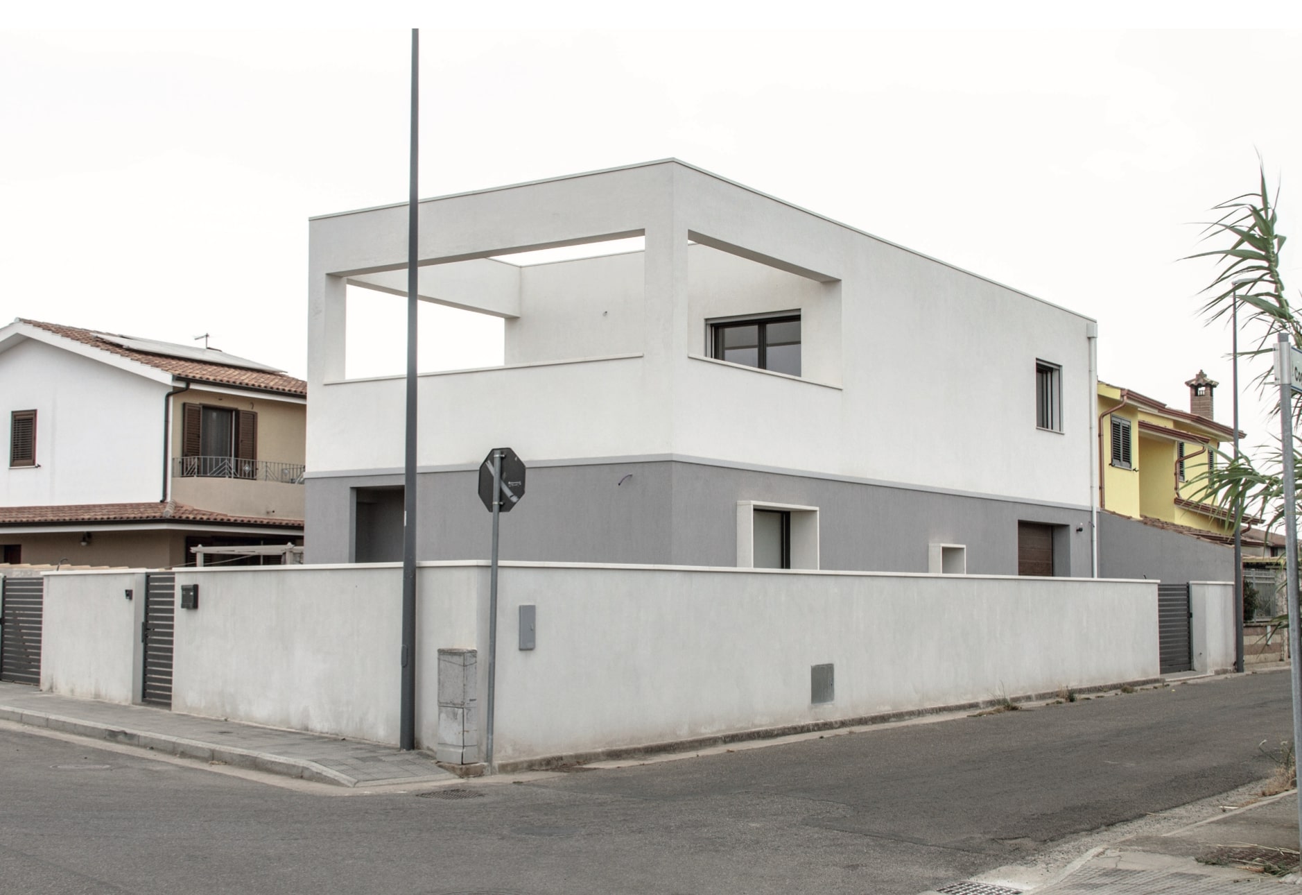 Da un lotto triangolare dai vincoli urbanistici stringenti emerge una volumetria dinamica che accoglie una socievole famiglia dal gusto mediterraneo. Il piano terra, che accoglie la zona giorno della casa, identifica due giardini, uno d’accoglienza e uno dal carattere privato, gentili aperture a tutta altezza immergono la casa in una luce avvolgente e bilanciata. Il piano primo ospita la zona notte, un piccolo studio incastonato nel disimpegno e una terrazza giardino. Negli interni diaologano semplicità e ricercatezza dei dettagli.