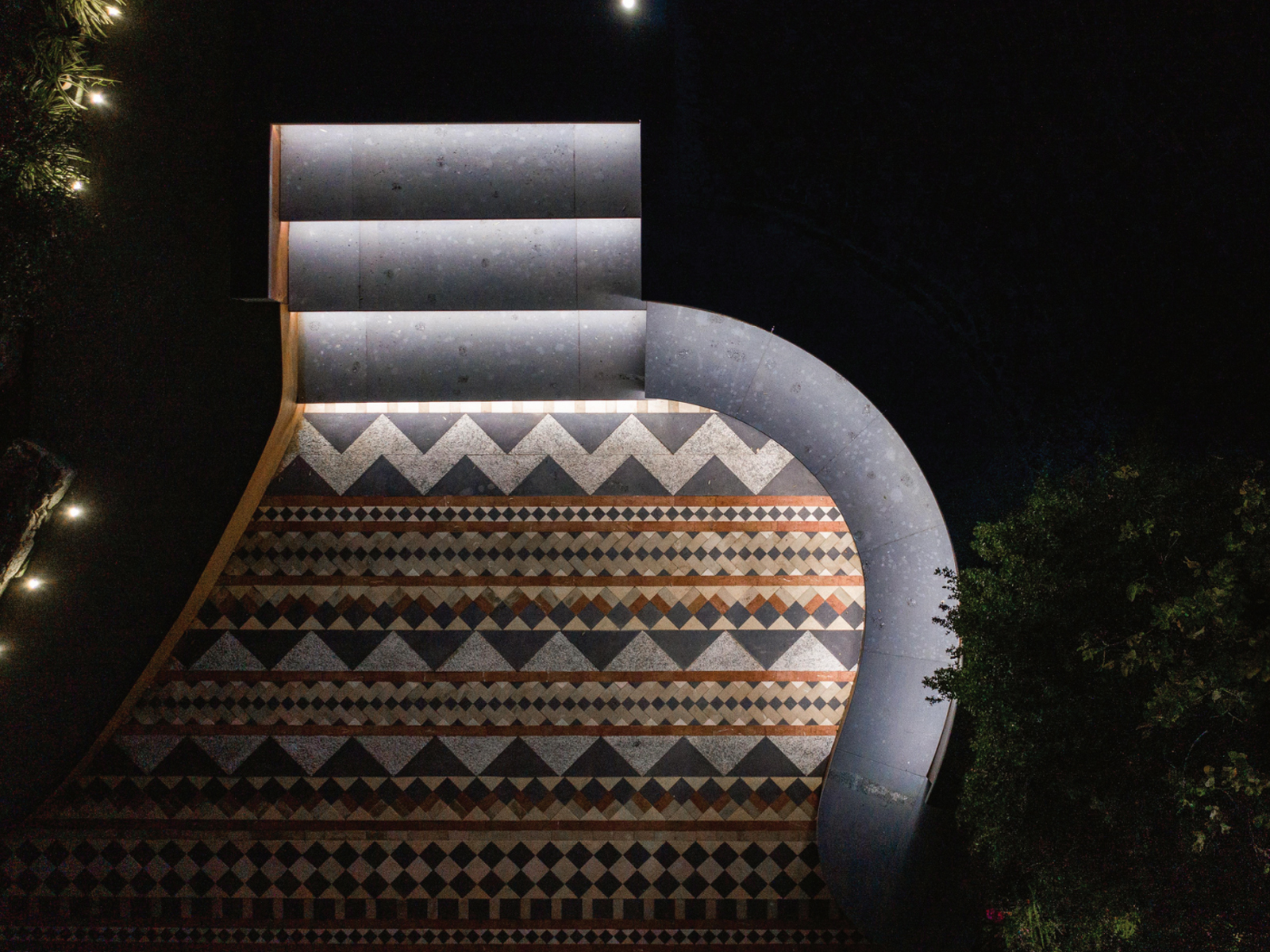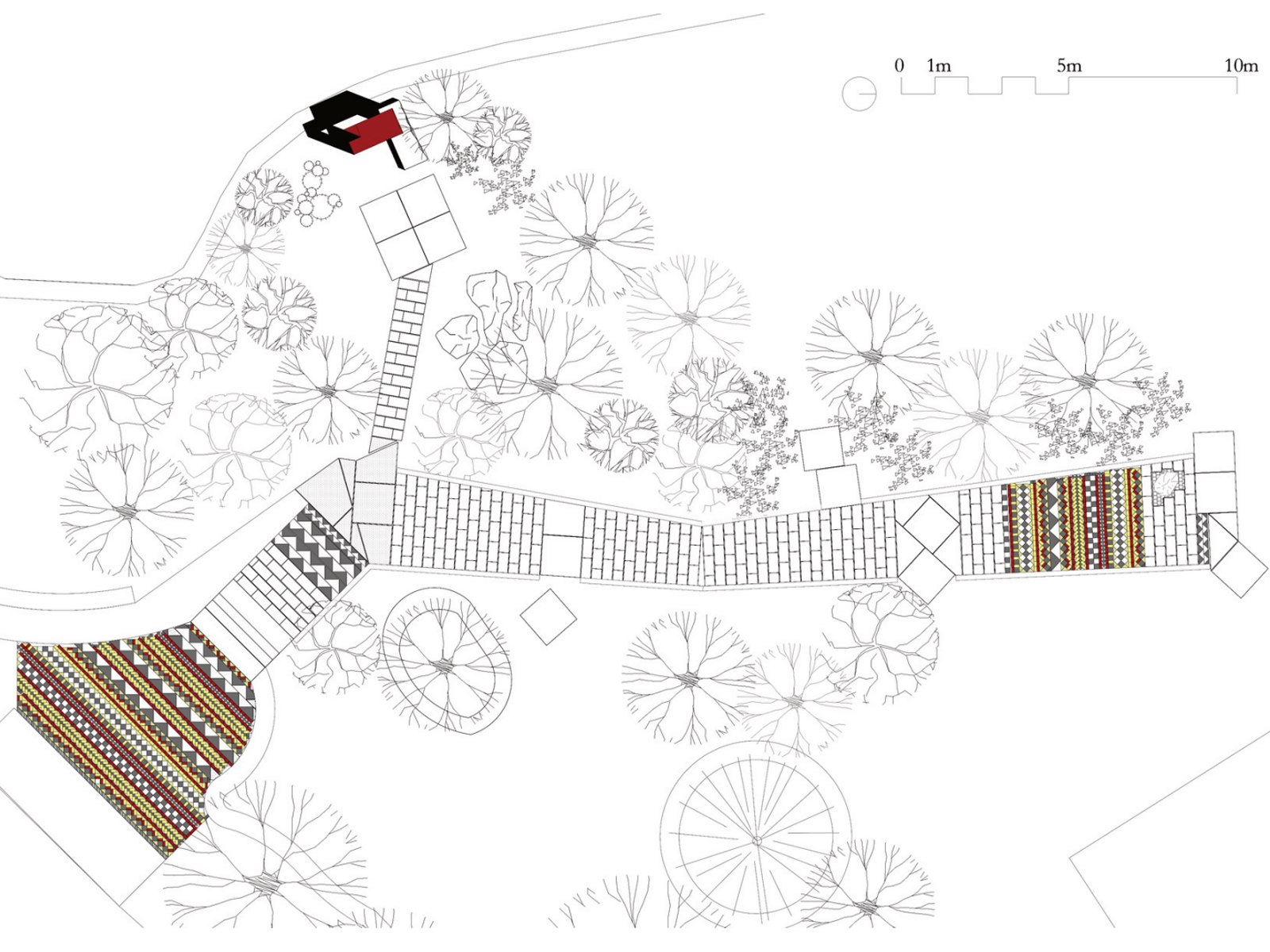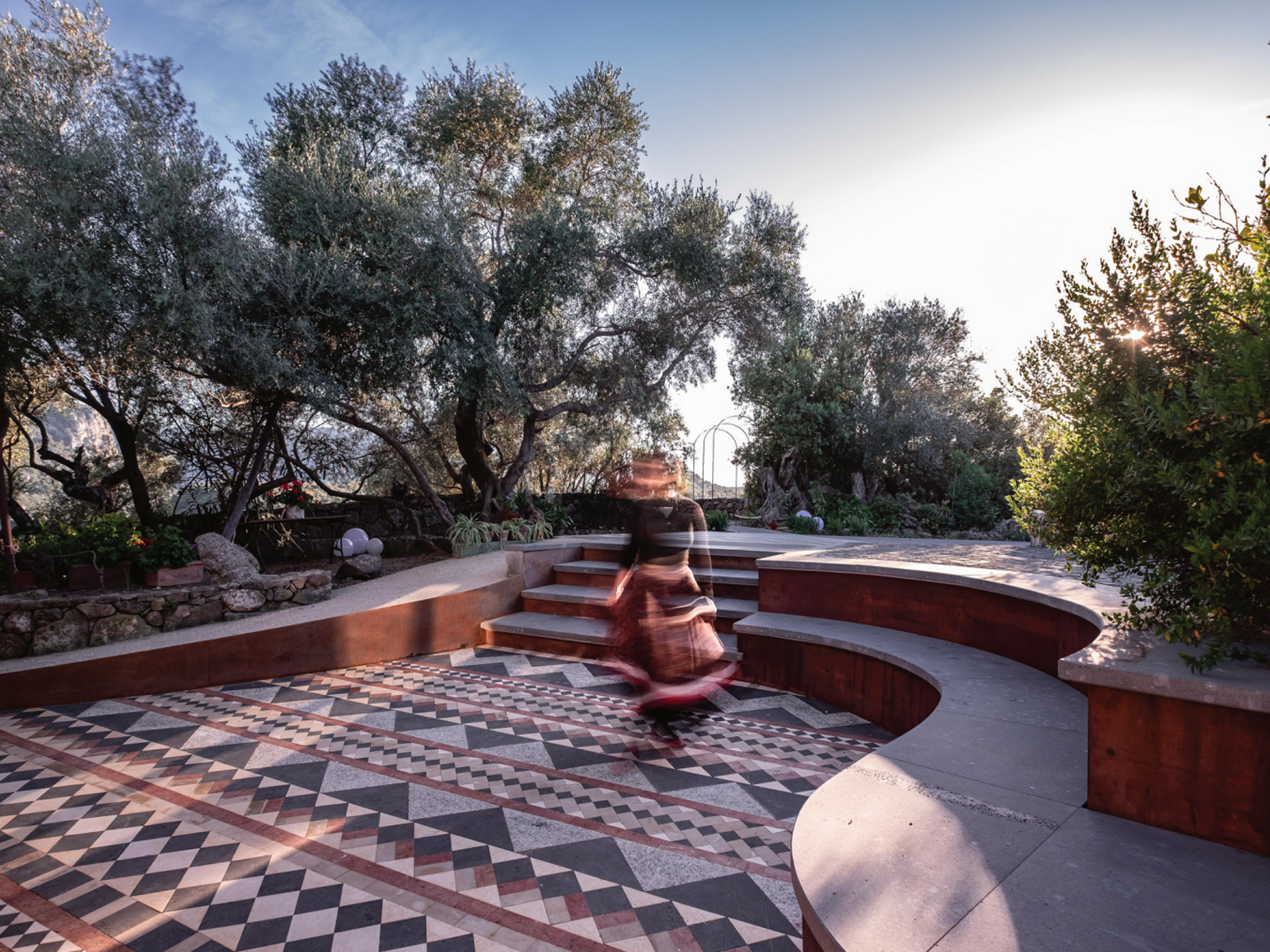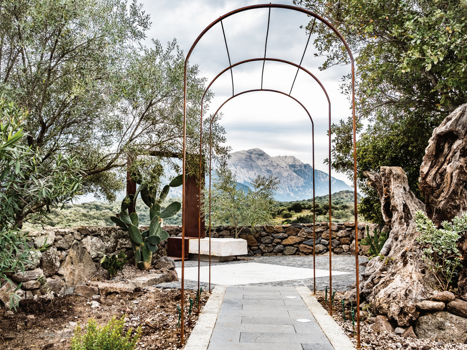 L’intervento consiste nel ripensamento degli spazi esterni dell’Agriturismo Canales, situato ai bordi della scarpata basaltica del Cedrino, a Dorgali (Sardegna, Italia); Le scelte progettuali hanno origine nella consapevolezza di una forte necessità di qualità per il progetto nei contesti rurali dell’isola. Una qualità che si cerca di tradurre in forme costruite, reinterpretando i principi e i caratteri di quell’abitare minimo che ha costruito nel tempo il paesaggio a bassa densità dell’isola. Questi principi-temi trovano la loro costruzione formale nell’individuazione di una strada-mosaico che gerarchizza lo spazio informale tra gli edifici dell’agriturismo e accenna, tramite scarti e piastre, alle soglie che la mettono in relazione con le diverse aree del sito. Una serie di elementi puntuali, come la cornice-belvedere e la pergola, individuano dei nodi salienti del sistema, legati all’apertura visiva verso il panorama del Supramonte. I materiali costitutivi del progetto reinterpretano la complessità morfologica locale, mettendo in campo, letteralmente, elementi in basalto, granito, calcare e laterizio, tessuti secondo trame modulari a formare un ‘tappeto litico’ nella soglia dell’edificio principale. Gli oggetti dello stare invece, la cornice e la pergola, sono realizzati in acciaio patinato, a richiamare l’atemporalità dell’oggetto tecnico che nella ruralità si confronta con l’organicità lapidea della sistemazione della quota zero.)