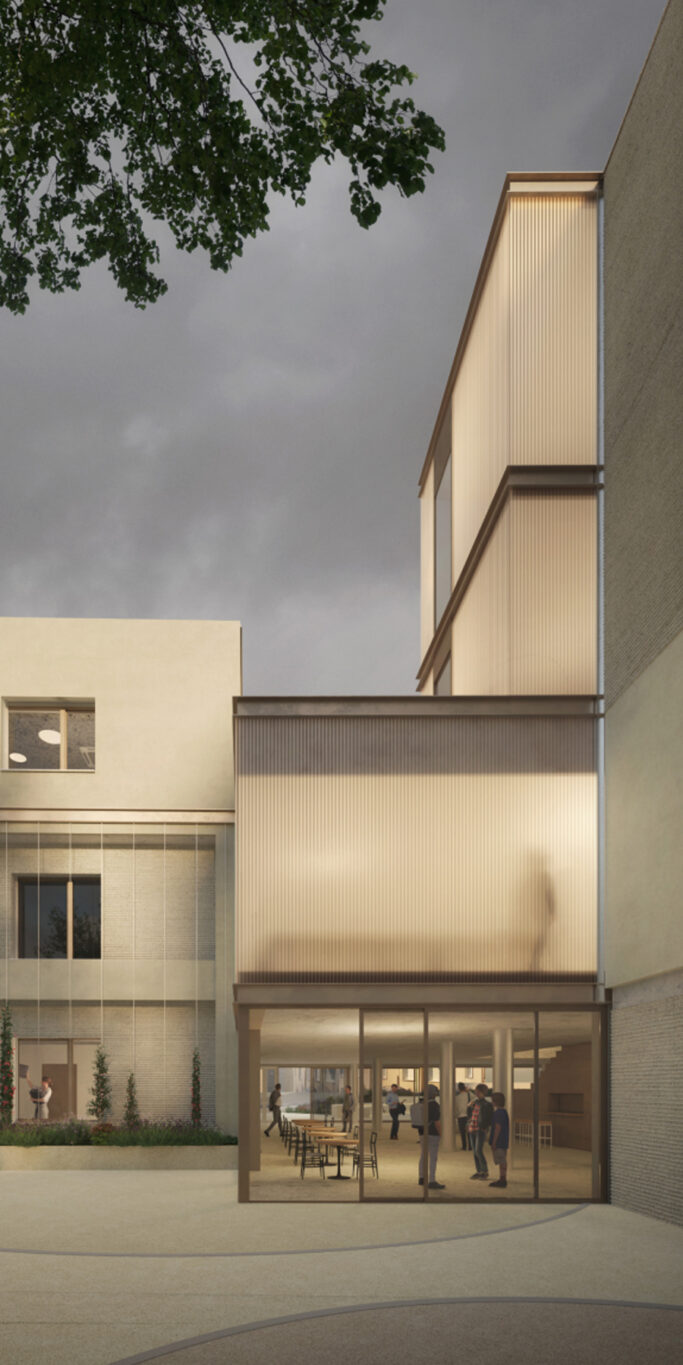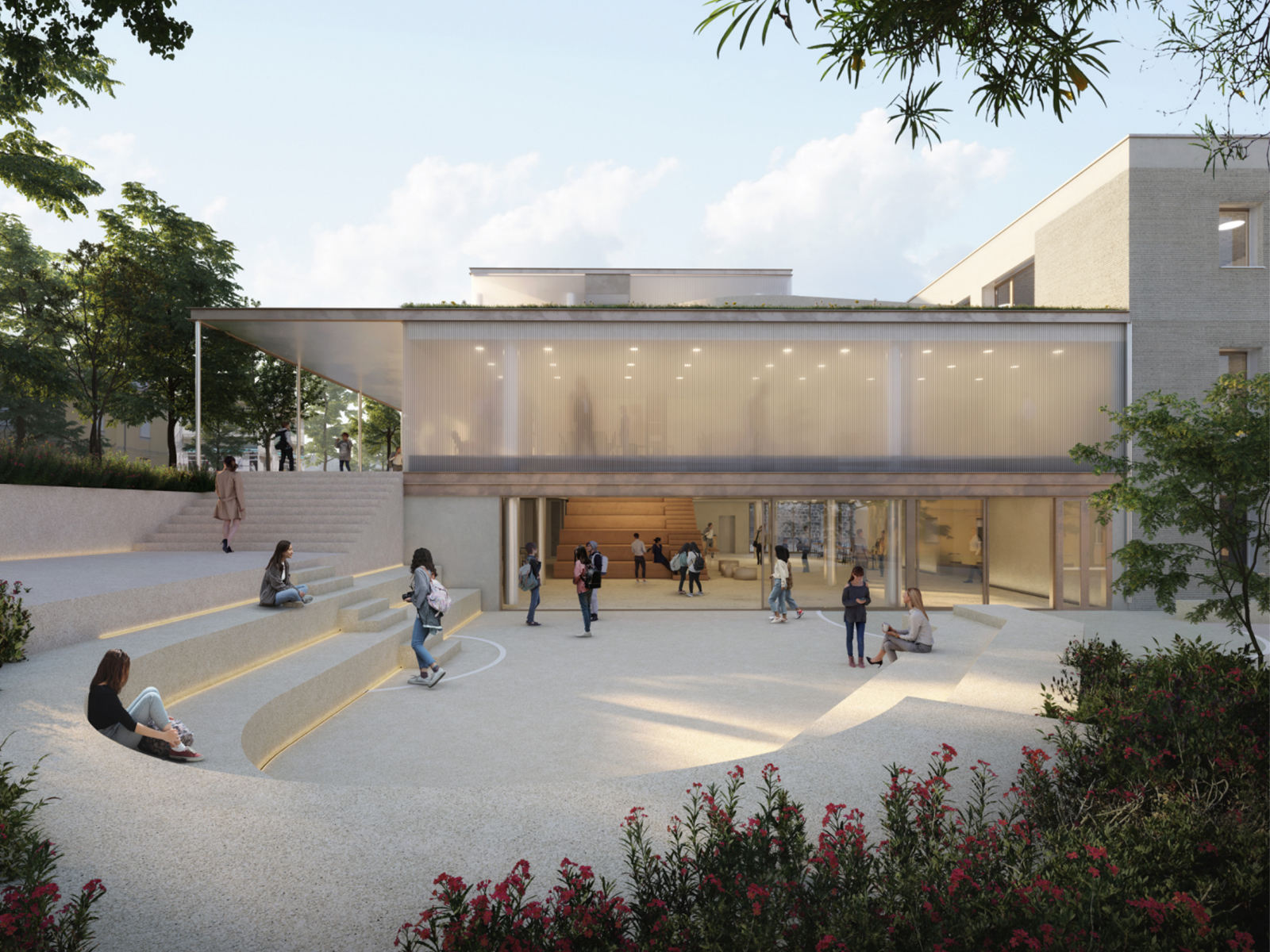 I fabbricati originari, correttamente rinnovati, lavorano in sinergia con i nuovi corpi di fabbrica che forniscono i servizi funzionali necessari in accordo con le linee guida del MIUR pubblicate nel 2013.