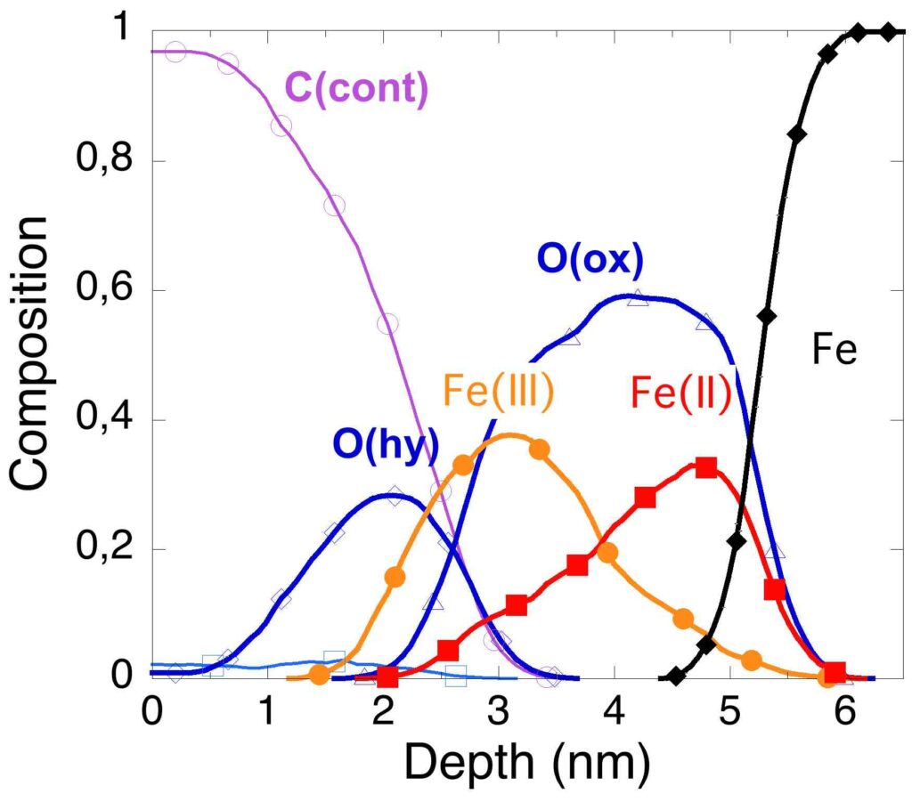 Publication: M.Olla, G. Navarra, B. Elsener and A. Rossi, Non-destructive in-depth composition profile of oxy-hydroxide nanolayers on iron surfaces from ARXPS measurement, Surface Interface Analysis 38 (2006) 964 – 974