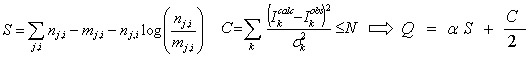 Angular resolved XPS (ARXPS) is at the basis for the experimental determination of thickness and composition of the film. MEM finds the concentration depth profile. This is done by maximising the overall logaritmic probability function, Q obtained by optimising the balance between maximum entropy, S and minimum chi-squared, C.
