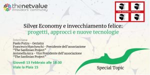 Segnaliamo l’evento, dal titolo Silver Economy e invecchiamento felice: progetti, approcci e nuove tecnologie, organizzato da The Net Value (Viale La Playa 15, Cagliari) e che si terrà giovedì 13 febbraio 2020 a partire dalle 18:30.